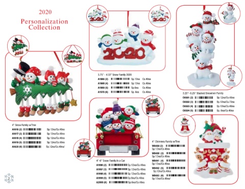 A1970 (6) Sp. 6ea Cs.48ea 3.25"- 6.25" Stacked Snowmen Family