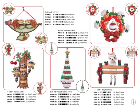 4"- 5.625" - Raccoon Family 5.75”-6.25” Gingerbread Tree Family A1934 (1) Sp.12ea/Cs.48ea