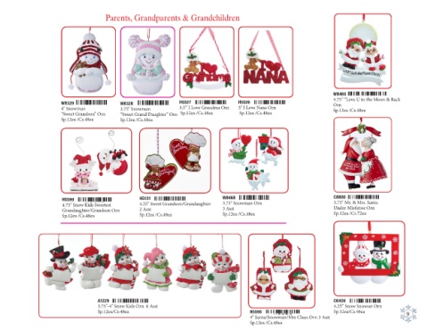 4" Snowman 3.75" Snowman 3.5” I Love Grandma Orn 3" I Love Nana Orn Sp.12ea /Cs.48ea