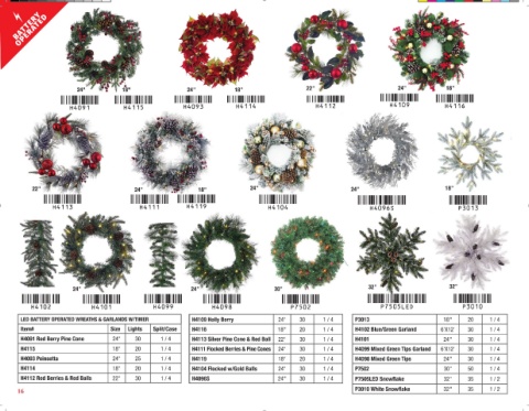 LED BATTERY OPERATED WREATHS & GARLANDS W/TIMER H4109 Holly Berry 24" 30 1 / 4 P3013 18" 20 1 / 4