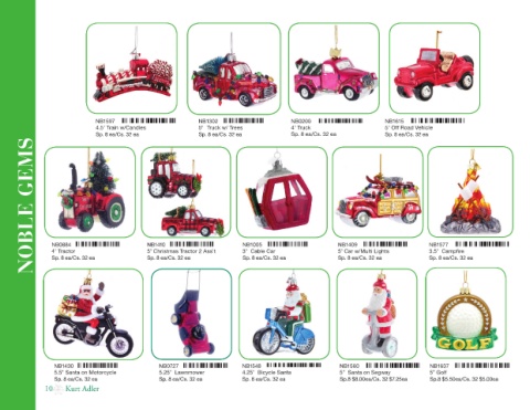 5.5" Santa on Motorcycle 5.25" Lawnmower 4.25" Bicycle Santa 5” Santa on Segway 5” Golf NB1637