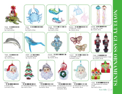 4.25" Dolphin T2252 5" Blue Glitter Whale 5.7" Octopus 4" Butterflies 2 Asst 6" Chalkboard Nutcracker 2 Asst