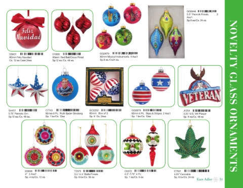 80mm Peacocks 2 Asst 6 Pc. 5.75” Patriotic Orn 80mm 6 Pc. Ruth Bader Ginsberg 80mm Box of 3 80mm 6 Pc. Stars & Stripes 2 Ass’t 4.25" U.S. Vet Plaque