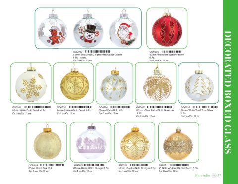 80mm White/Gold Detail 6 Pc. 80mm Silver w/Gold Detail 6 Pc. 60mm White/Gold 6 Pc. 80mm Clear Ball w/Gold Pinecone 90mm White/Gold Tree Silver