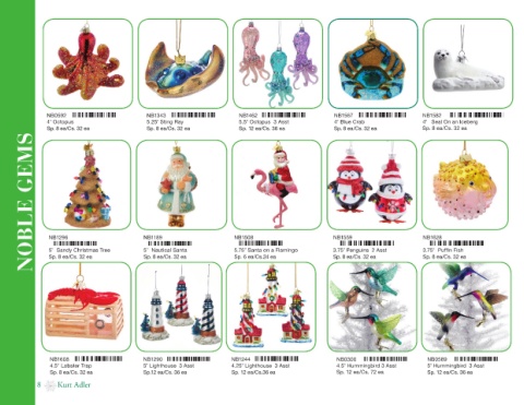 5" Sandy Christmas Tree 5" Nautical Santa 5.75” Santa on a Flamingo 3.75" Penguins 2 Asst 3.75" Puffin Fish