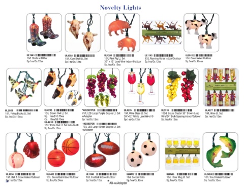 10/L Flying Ducks Lt. Set 10/L Brown Owl Lt. Set 75/L LED Large Purple Grapes Lt. Set 10/L Wine Glass Lt. Set 100/L Grape Cluster 30" Brown Lead 10/L Wine Lt. Set