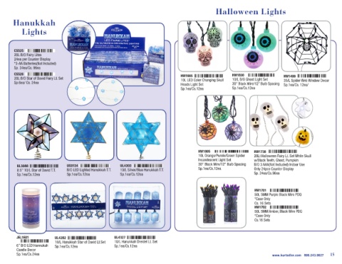 20L B/O Star of David Fairy Lt. Set 10L LED Color Changing Skull 10/L B/O Ghost Light Set 35/L Spider Web Window Decor