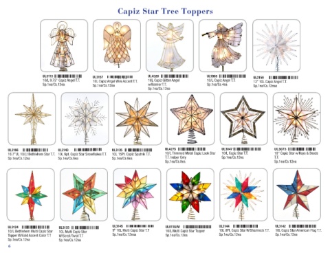 16.7”UL 10/Lt Bethlehem Star T.T. 10L 6pt. Capiz Star Snowflakes T.T. 10L 15Pt. Capiz Sputnik T.T. 10/L Trimmed Metal Capiz Look Star 10/L Capiz Star T.T. 10" Capiz Star w/Rays & Beads