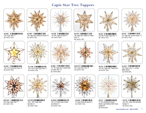 10/L Clear Capiz Star TT 10/L 12PT. Capiz Gold 10/L 10”Silver Capiz & Wire 9" Capiz Silver Sunburst T.T. 14”10/L Bethlehem Brass 10/L 6Pt. Capiz Star W/Scroll