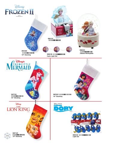 ©Disney www.disney.com/frozen DN5191 DN8191 DN7206 100mm Waterglobe 19" Stocking DN9195 DN8191 DN7026 Farie Light Set DN9195 DN7183 DN7203 19" Stocking 19" Stocking DN7203 DN7183 ©Disney DN7197 164 DN9162 165 19" Stocking Light Set DN7197 DN9162