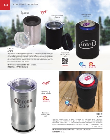 Vaso térmico y porta lata de acero inoxidable 304, con doble pared insulada al alto insulada al alto