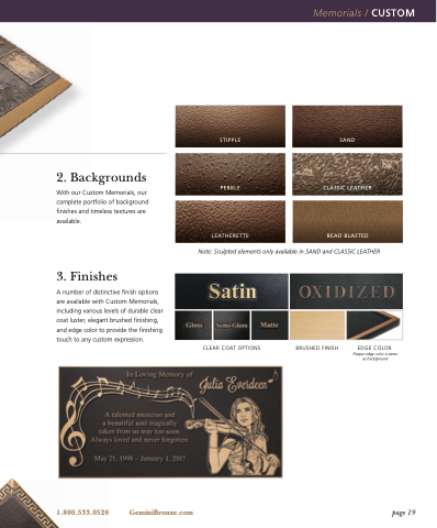 With our Custom Memorials, our complete portfolio of background finishes and timeless textures are available.