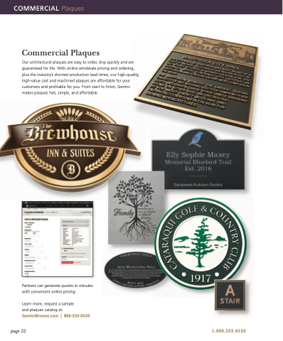 and plaques catalog at: GeminiBronze.com | 800-533-0520