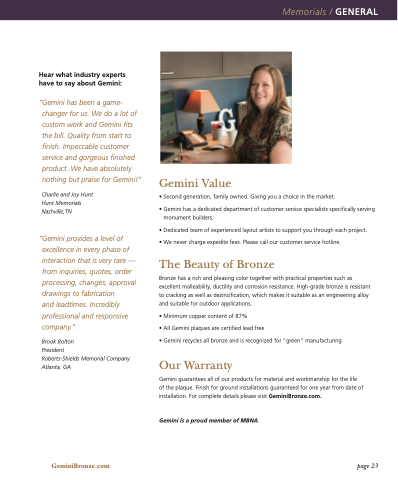 • Gemini has a dedicated department of customer service specialists specifically serving monument builders.