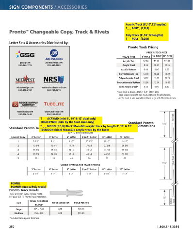 Track shipped straight may incur additional freight charges. Acrylic track is also available in black to go with MoonGlo letters.