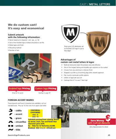 • Size of the finished logo or letters should be in art file • Metal types and finish