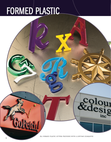 FORMED PLASTIC 8 All formed plastic letters provided with a lifetime guarantee