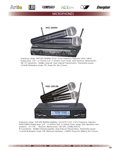 Frequency range: UHF 600-950MHz T.H.D: 0.5% Frequency response: 40Hz-18KHz