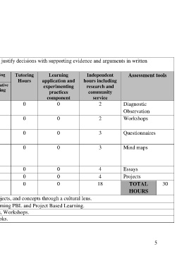 Class Hours/ Teaching Tutoring Learning Independent Assessment tools