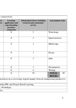 Thematic Units Teaching Component g Hours application and research and community