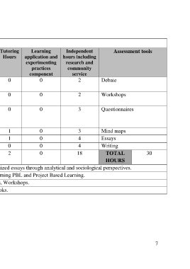 Class Hours/ Teaching Tutoring Learning Independent Assessment tools