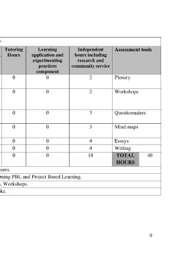 Class Hours/ Teaching Tutoring Learning Independent Assessment tools