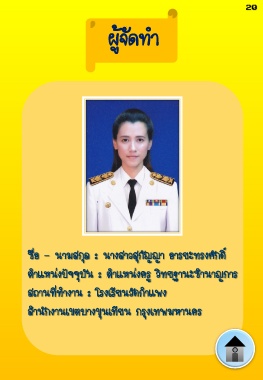 20 ผู้จัดท า ชื่อ - นำมสกุล : นำงสำวสุกัญญำ อำรยะทรงศักดิ์ ต ำแหน่งปัจจุบัน : ต ำแหน่งครู วิทยฐำนะช ำนำญกำร สถำนที่ท ำงำน : โรงเรียนวัดก ำแพง ส ำนักงำนเขตบำงขุนเทียน กรุงเทพมหำนคร