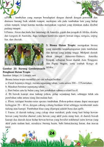 b.Fauna : bison dan kuda liar (mustang) di Amerika, gajah dan jerapah di Afrika, domba
