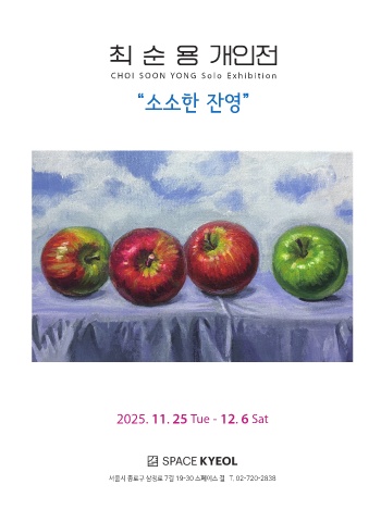 순 용 최 개인전 최 순 용 개인전 CHOI SOON YONG S olo Exhibition “소소한 잔영” 2025. 11. 25 Tue - 12. 6 Sat 서울시 종로구 삼청로 7길 19-30 스페이스 결 T. 02-720-2838