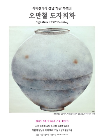 지미갤러리 강남 개관 특별전 오만철 도자회화 Signature 1330° Painting 반추(反芻)-달항아리, 백자도판 1330℃ 환원소성, 131×131cm, 2025 2025. 10. 1 Wed - 12. 12 Fri 지미갤러리 강남 T.010-9269-9269 서울시 강남구 테헤란로 20길 5 삼한빌딩 7층 운영시간 : 월요일 - 금요일 10:30 - 18:30