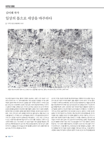 고 김미래 작가를 소개하고 있다. 작가는 순간적인 감정보다는 장시간 축적된 술 세계를 확장해 나간다. 흥미로운 점은 이러한 작업의 출발점이 철저히 일