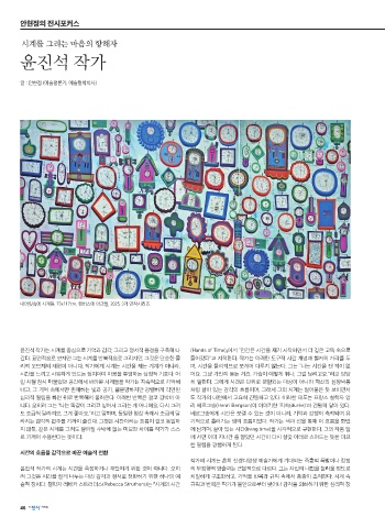 라지는 감각의 변주를 기꺼이 즐긴다. 그것은 시간이라는 흐름이 결코 동일하 기적으로 흘러가는 생의 흐름이었다. 작가는 색과 선을 통해 이 흐름을 화면