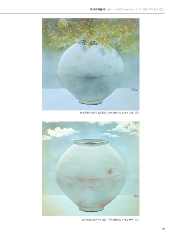 접수마감-매월15일 E -mail : cr ar t1004@hanmail.ne t 문의 0 10-6313- 2 7 4 7 (이문자 편집장) 접수마감-매월15일 E-mail : crart1004@hanmail.net 문의 010-6313-2747 (이문자 편집장) 반추(反芻)-달항아리(안개꽃) 1330℃ 환원소성 후 옻칠 57x57 2025 반추(反芻)-달항아리(구름) 1330℃ 환원소성 후 옻칠 81x81 2025 55 55