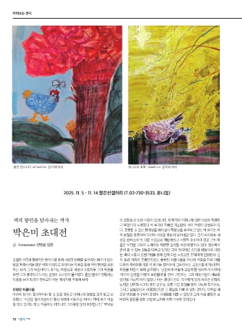 하는 화가 그가 박은미이다. 화가는 작품으로 세상과 소통하듯 그의 작품을 작품을 만들기 위해 분주했다. ‘남들에게 어떻게 보일까’를 생각하기 이전에