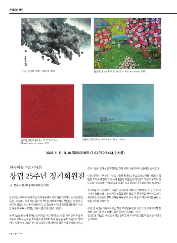 음을 내디뎠다. 지난 25년 동안 한국미술 아트피아회는 끊임없는 열정과 노 력을 지속할 계획이다.