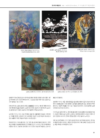 거와 현재의 미감을 연결한다. 호랑이와 까치의 상징적 의미를 현대적 감성으 구조를 은유적으로 제시한다.