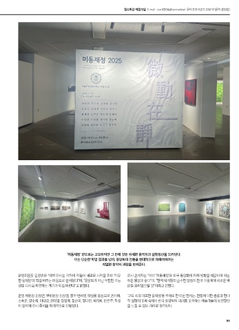 운영위원장 김정연은 “이번 전시는 각자의 작품이 새로운 시작을 위한 ‘미묘 전시 관계자는 “이번 ‘미동재정’은 한국 동양화의 미래 방향을 예감하게 하는