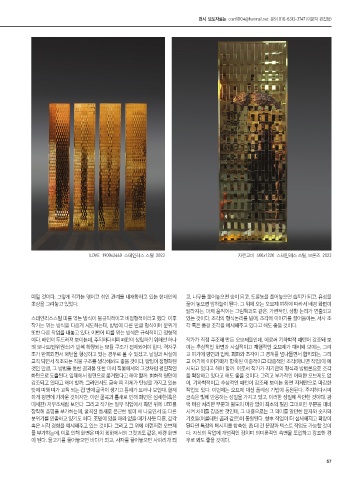 탓에 띠와 띠가 교직 되는 접 면에 굴곡이 생기고 틈새가 드러나 보인다. 현저 작업도 있다. 이번에는 오브제 대신 폴리싱 기법이 동원된다. 주지하다시피