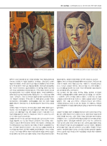 >은 굵고 거친 터치로 이루어진 파랑색 배경과 붉은색 계열로 이루어진 얼굴이 유학하고 돌아와 서울과 예산을 오가며 작품 활동을 이어갔던 예산 서양화단의