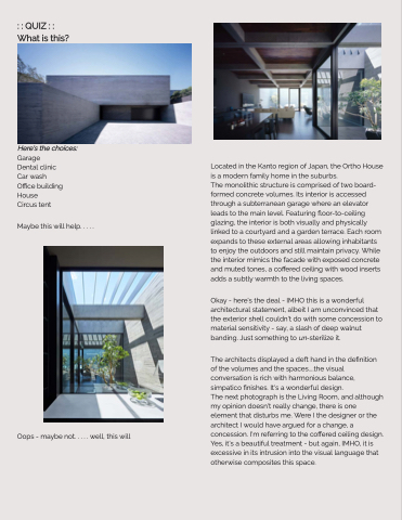 Okay - here's the deal - IMHO this is a wonderful architectural statement, albeit I am unconvinced that the exterior shell couldn't do with some concession to material sensitivity - say, a slash of deep walnut banding. Just something to un-sterilize it.