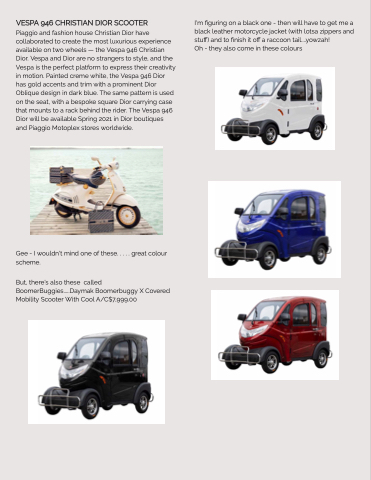 But, there's also these called BoomerBuggies.....Daymak Boomerbuggy X Covered Mobility Scooter With Cool A/C$7,999.00