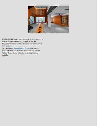 Hooba Design Group used bricks with glass inserts to create a "semi-transparent character" for the headquarters of brick manufacturer Kohan Ceram in Tehran, Iran.