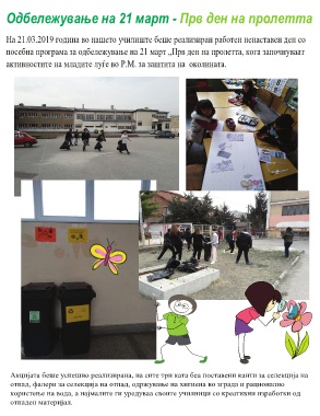 На 21.03.2019 година во нашето училиште беше реализиран работен ненаставен ден со