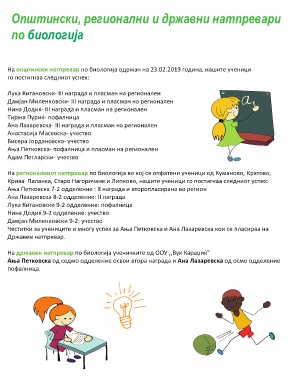 На општински натпревар по биологија одржан на 23.02.2019 година, нашите ученици
