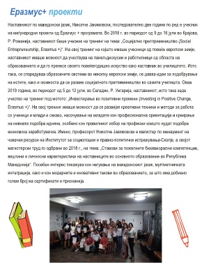 на меѓународни проекти од Еразмус + програмата. Во 2018 г. во периодот од 9 до 16 јули во Крајова,