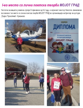 I-во место со лична поетска творба МОЈОТ ГРАД