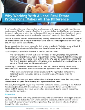 to choosing a real estate agent, the millennial generation’s mantra is, “local, local, local.”