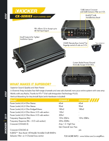 Subsonic Filter: on 5-Channel bass section FOR MORE INFO : www.kicker.com/cx-amplifiers