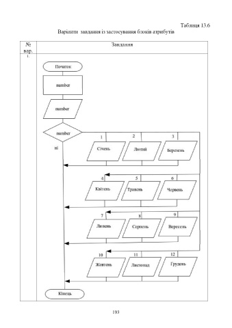 Таблиця 13.6 Варіанти завдання із застосування блоків атрибутів № Завдання вар. 1. 193