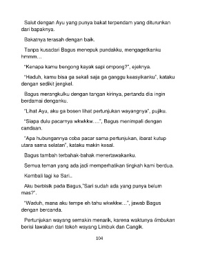 Tanpa kusadari Bagus menepuk pundakku, mengagetkanku